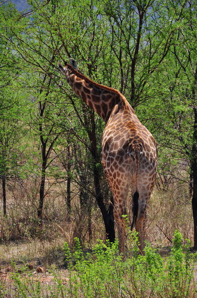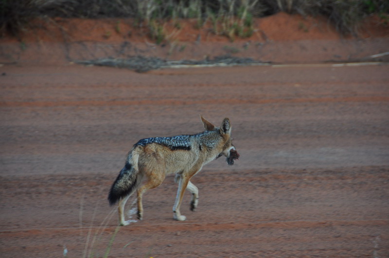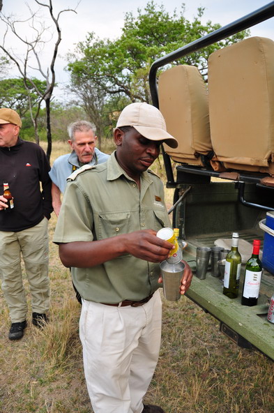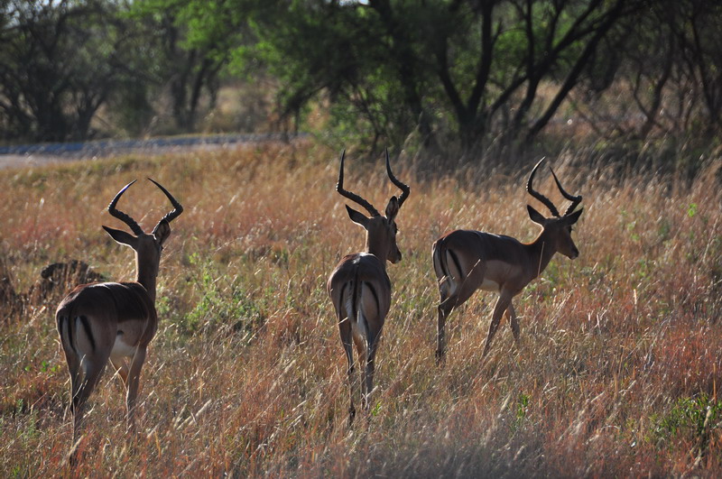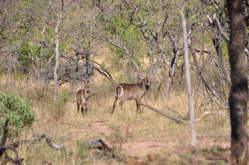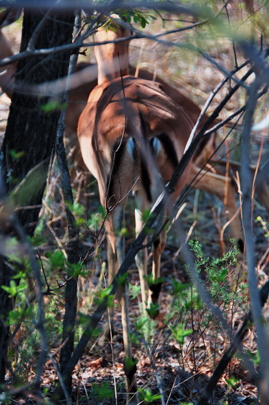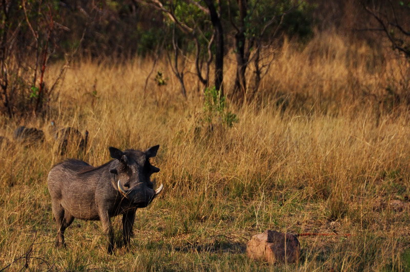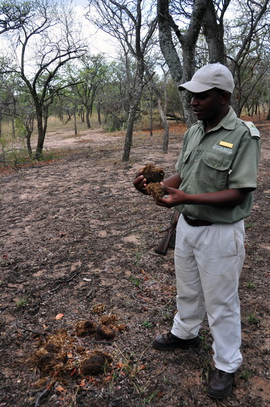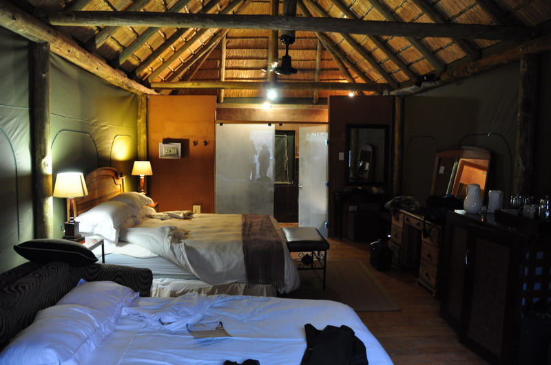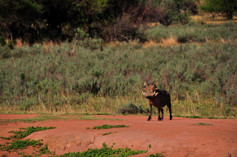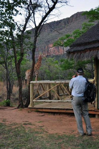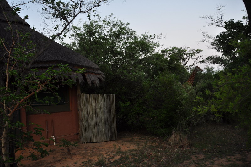 Inne på själva campet får vi bl.a. besök av impala, babianer, vårtsvin och en giraff. Bara några tiotals meter därifrån ser vi spår av elefanter, lejon och geparder, vilket också är anledningen till att vi även inom själva campområdet blir eskorterade av Aubrey och Mike, utrustade med jaktgevär, så fort solen gått ner.