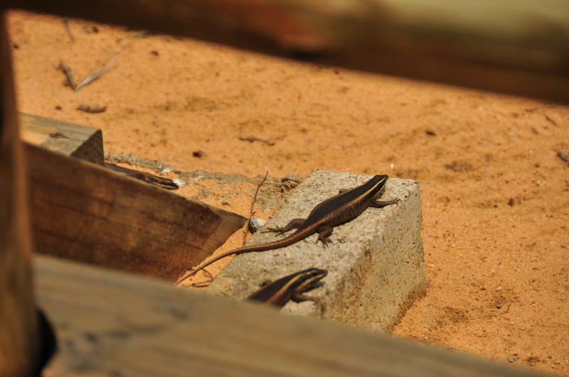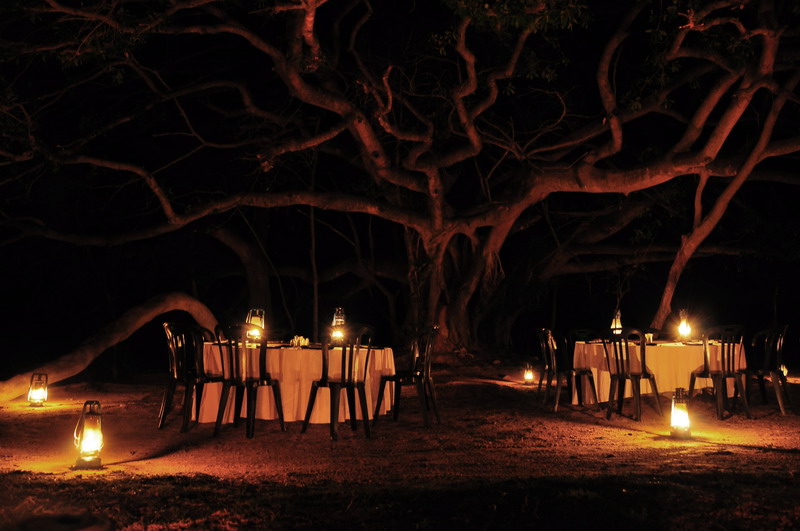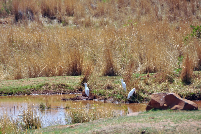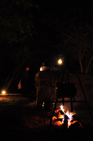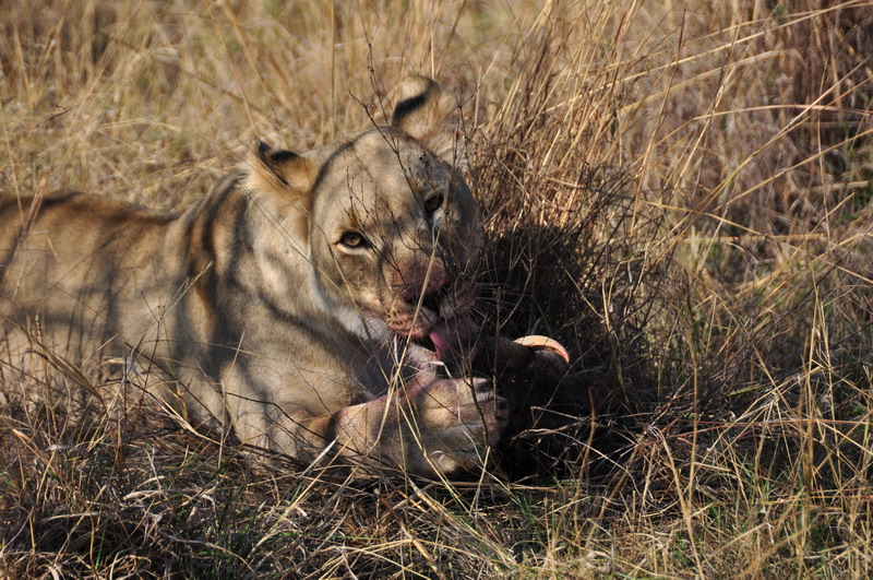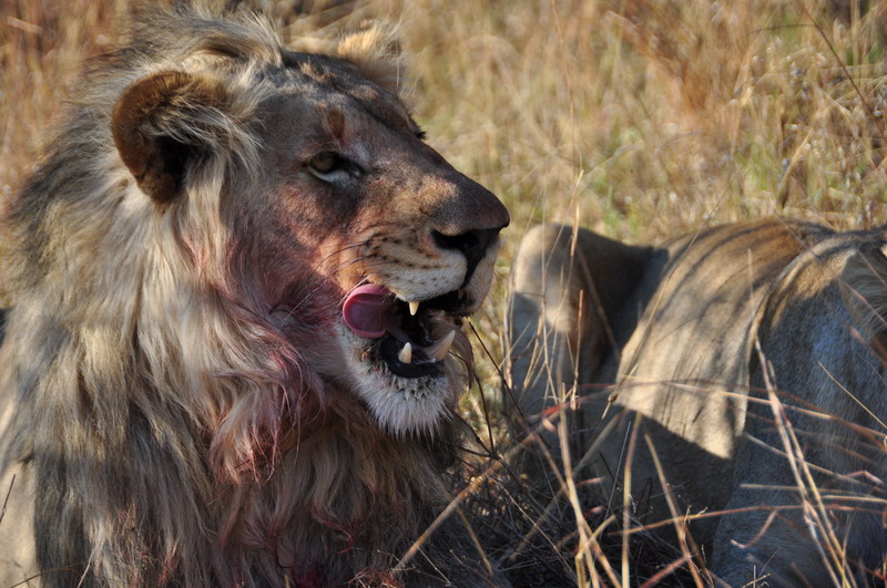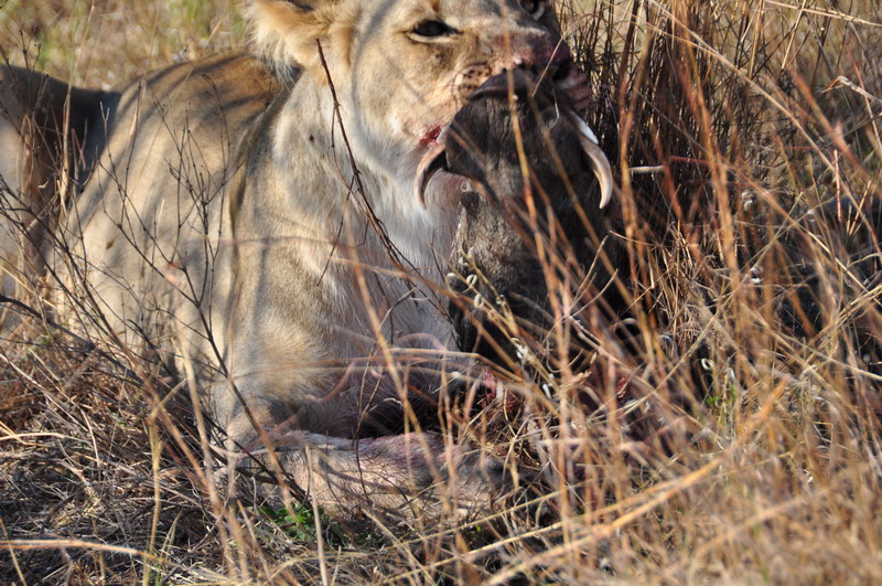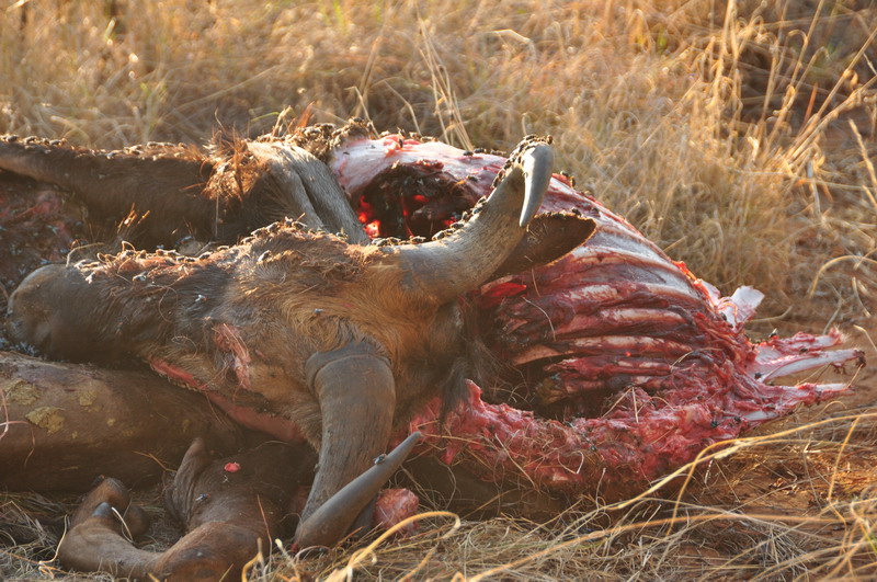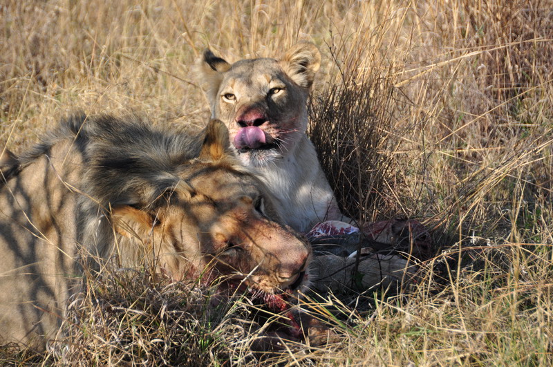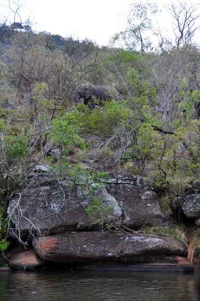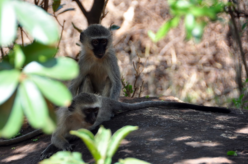 Inne på själva campet får vi bl.a. besök av impala, babianer, vårtsvin och en giraff. Bara några tiotals meter därifrån ser vi spår av elefanter, lejon och geparder, vilket också är anledningen till att vi även inom själva campområdet blir eskorterade av Aubrey och Mike, utrustade med jaktgevär, så fort solen gått ner.