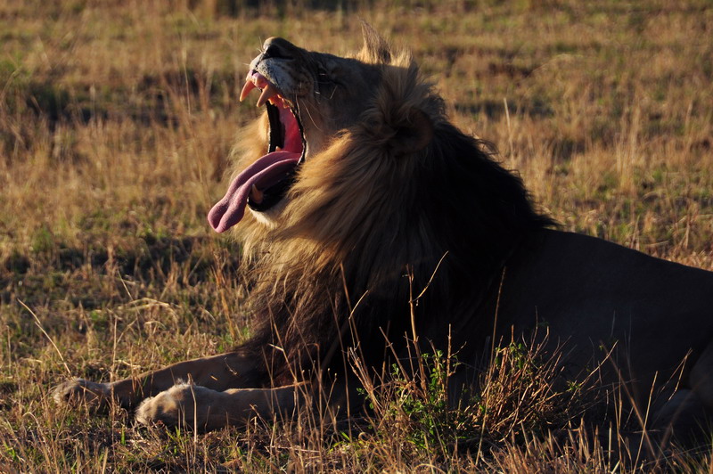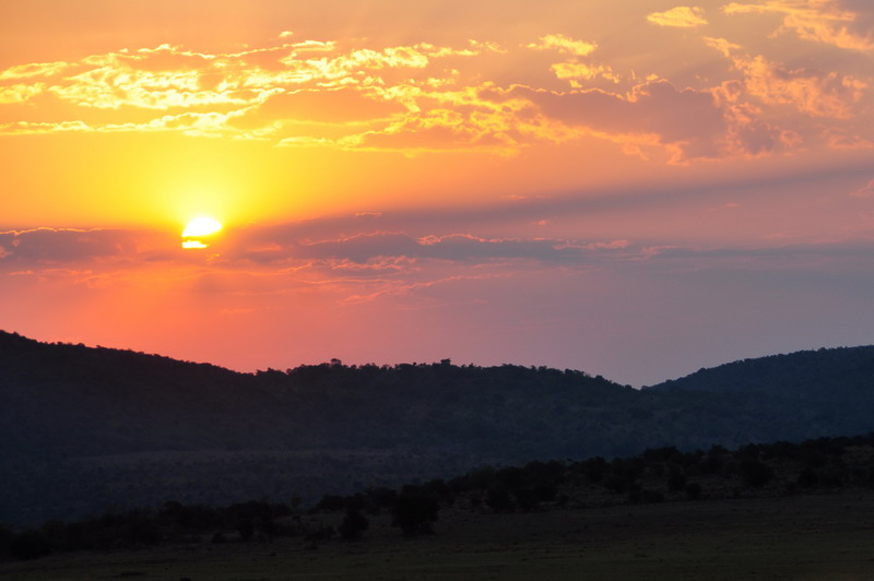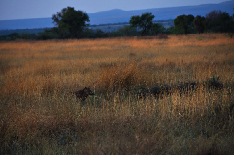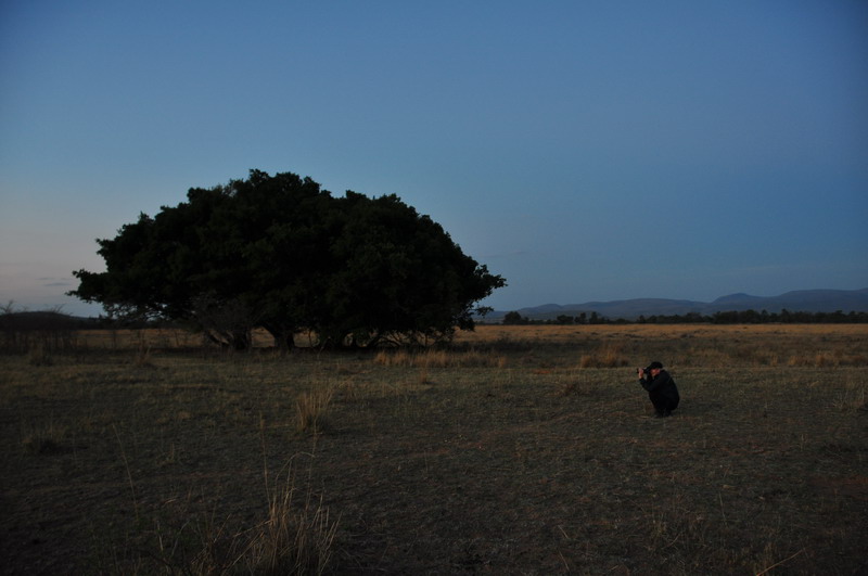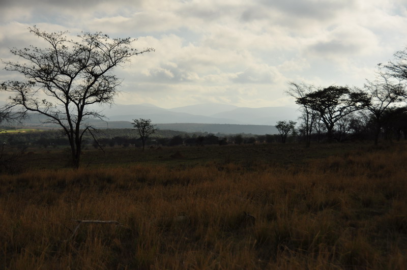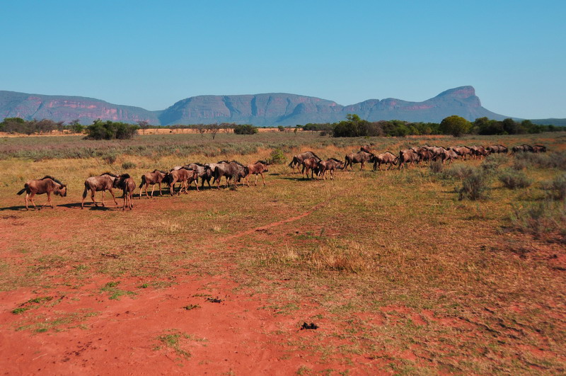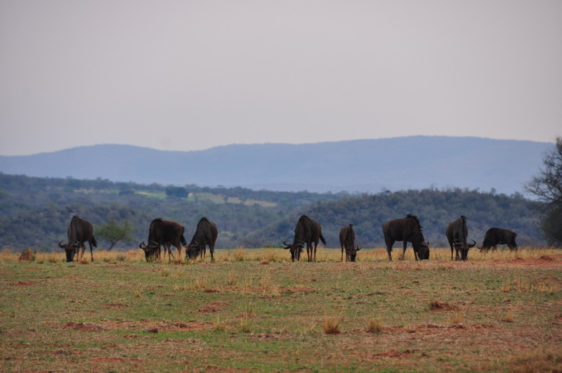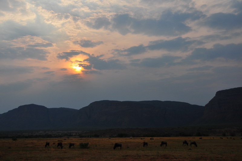 Aubrey skämmer bort oss redan från början genom att ta en rejäl omväg mot campet, så att han hinner visa oss stora flockar av gnuer och impala som betar på området, allt mot en imponerande bergskjedja i bakgrunden.
