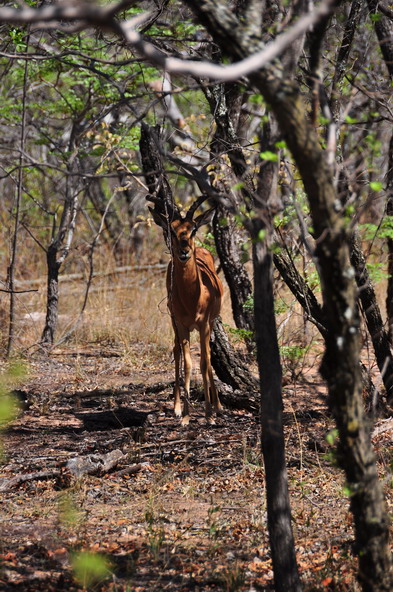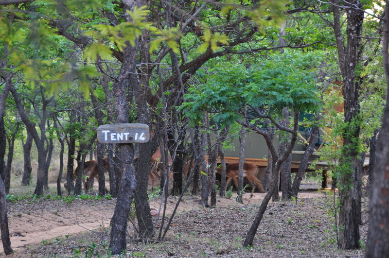 Efter att ha checkat in till vårt stugliknande "tält" sätter jag på vattnet i den murade utomhusduschen i anslutning till tältet, varpå en impala snopet tittar upp bara några meter bort. Jag är helt såld på stället och vi har inte varit här mer än 30 minuter än så länge...