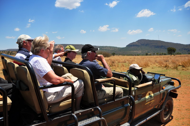 Vi åker ner till Sydafrika för att bo i Entabeni som är ett privat naturreservat nordost om Johannesburg. Efter några timmar i buss når vi den mäktiga infarten till Entabeni, där våra guider för de kommande dagarna (Aubrey från Pedistammen och Mike från Swatzistammen) möter upp oss.
